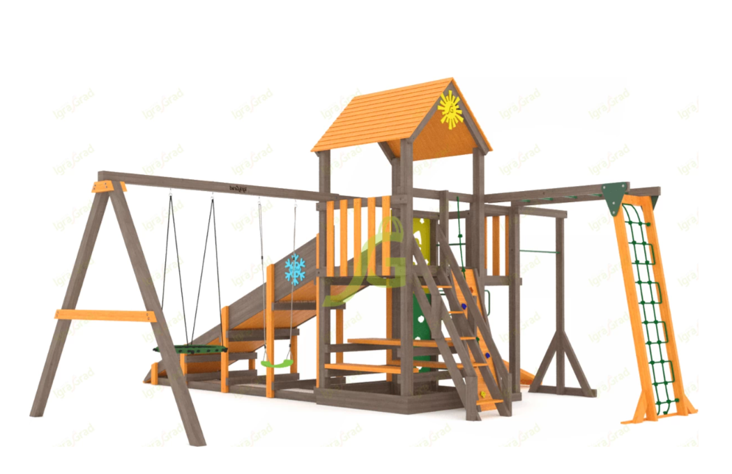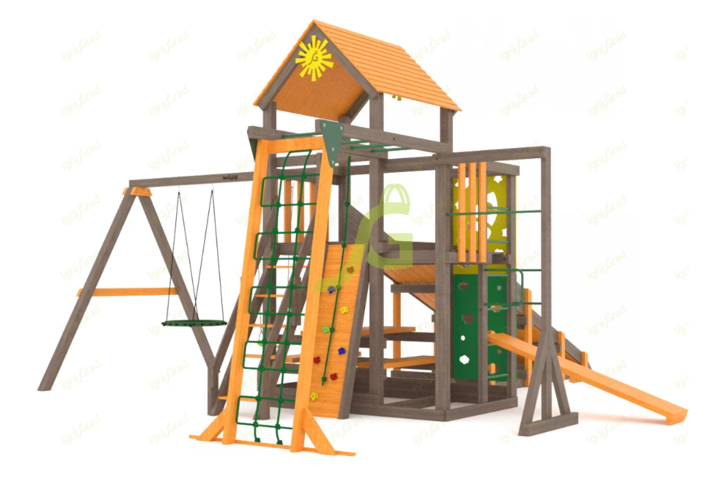 По желанию клиента игровая площадка может быть укомплектована дополнительными элементами. Можно заменить обычные качели на качели-гнездо, которые очень удобны в использовании. Наши специалисты обсудят с вами все детали заказа и быстро оформят заявку.