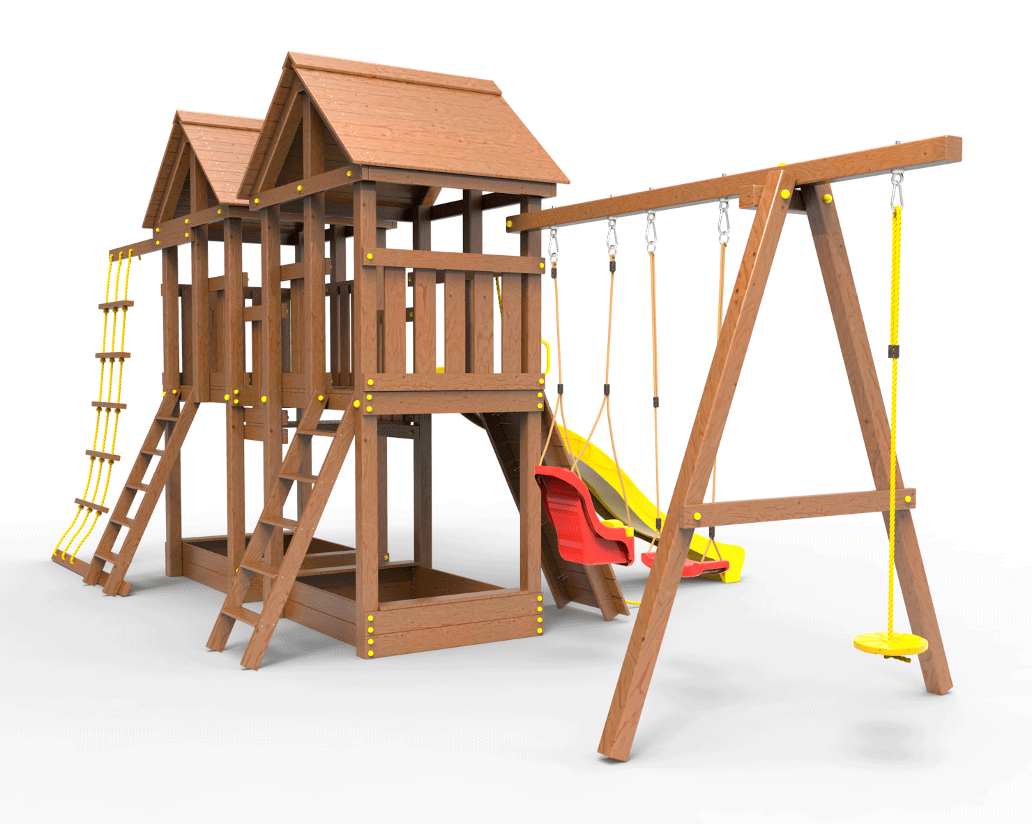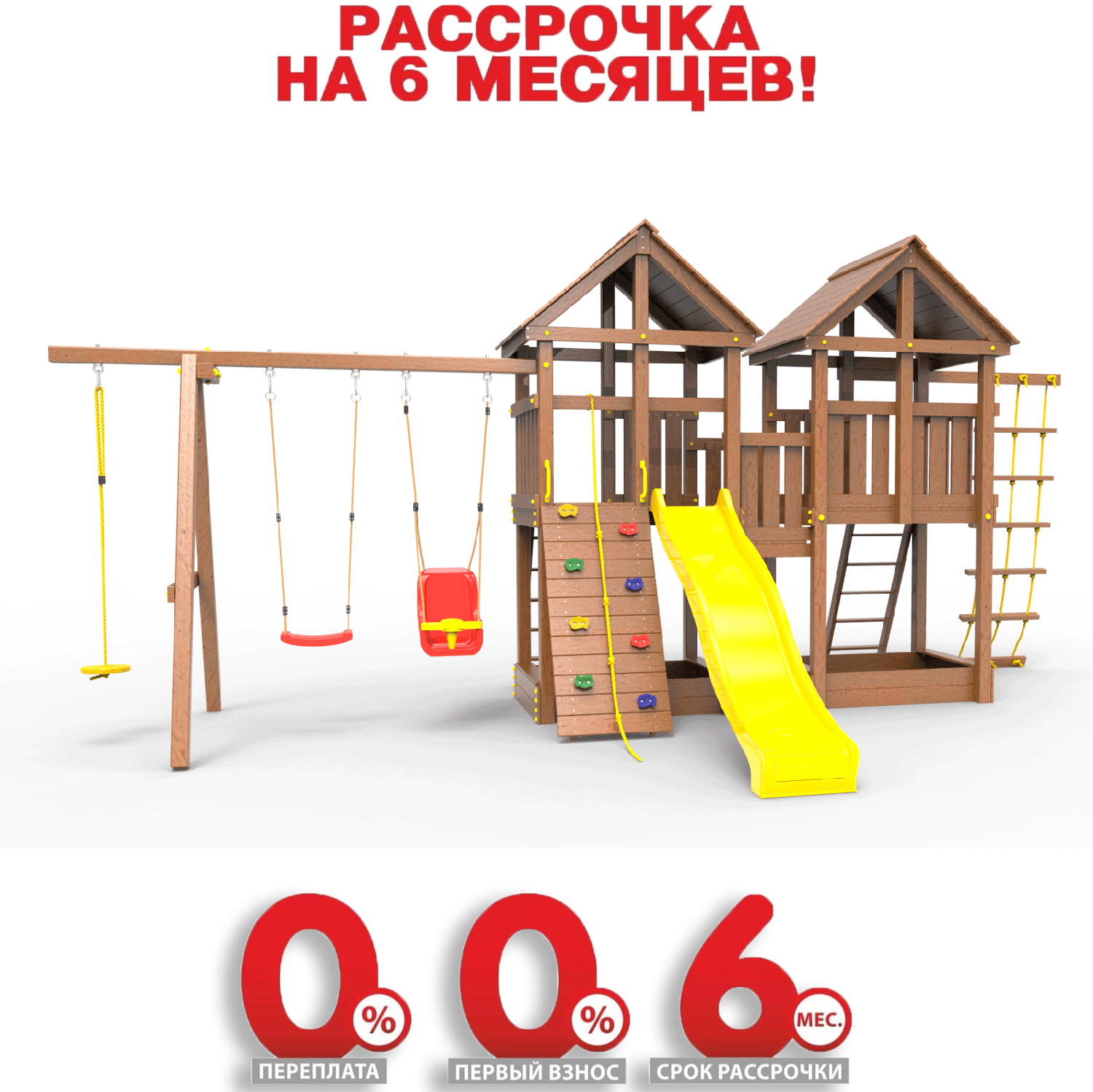 Обращаем Ваше внимание, что фактический цвет детской площадки может отличаться от представленных фото на сайте. Специфика окраски нетоксичными пропитками и красителями допускает отклонения в цветовой гамме отгружаемых изделий. Также обратите внимание, что фактический цвет может отличаться из-за цветопередачи устройства на котором Вы смотрите фото.