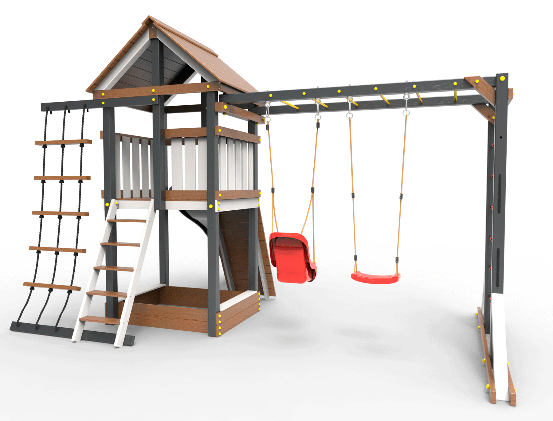 Обращаем Ваше внимание, что фактический цвет детской площадки может отличаться от представленных фото на сайте. Специфика окраски нетоксичными пропитками и красителями допускает отклонения в цветовой гамме отгружаемых изделий. Также обратите внимание, что фактический цвет может отличаться из-за цветопередачи устройства на котором Вы смотрите фото.