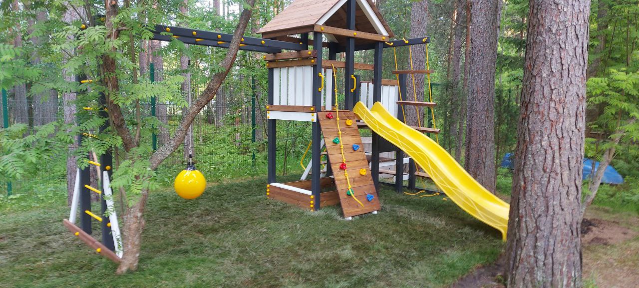 Обращаем Ваше внимание, что фактический цвет детской площадки может отличаться от представленных фото на сайте. Специфика окраски нетоксичными пропитками и красителями допускает отклонения в цветовой гамме отгружаемых изделий. Также обратите внимание, что фактический цвет может отличаться из-за цветопередачи устройства на котором Вы смотрите фото.
