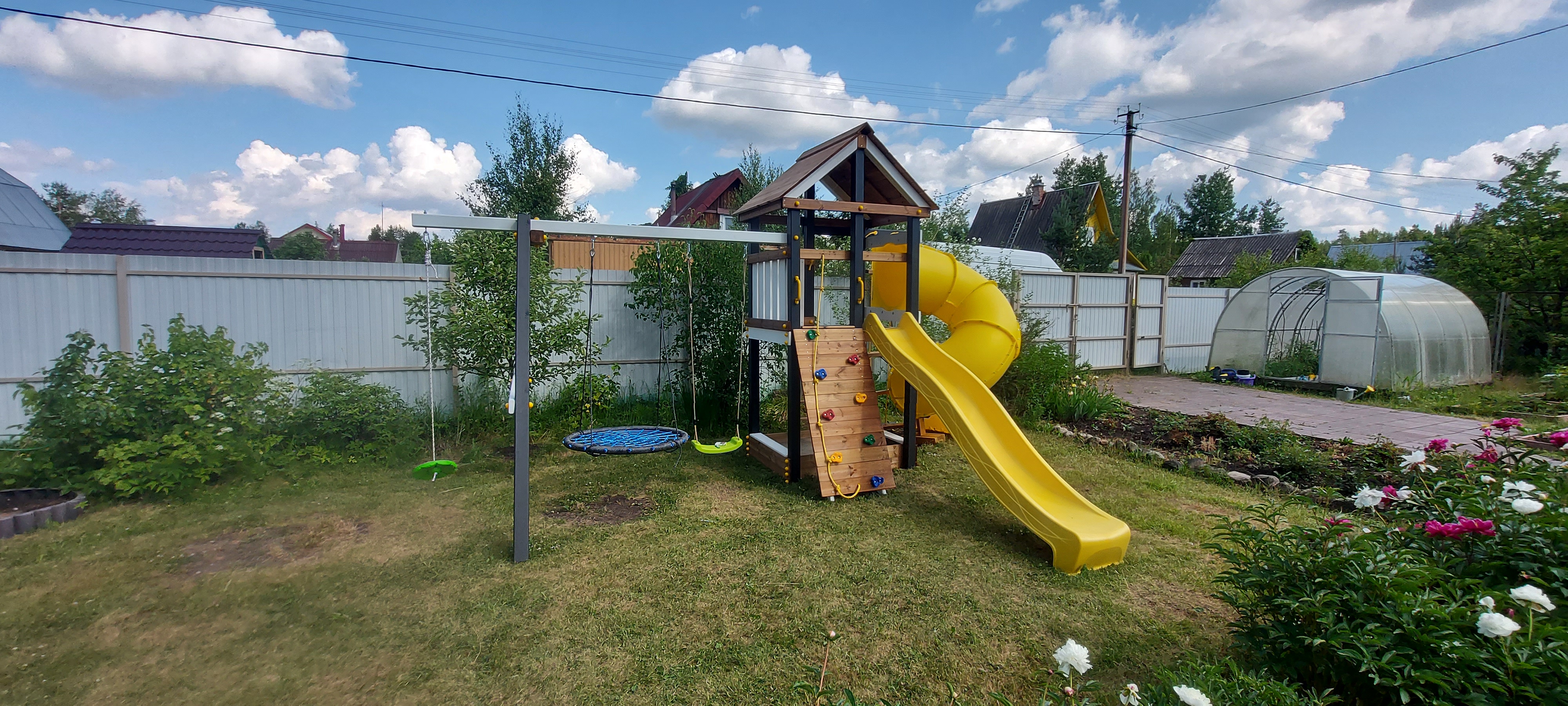 Обращаем Ваше внимание, что фактический цвет детской площадки может отличаться от представленных фото на сайте. Специфика окраски нетоксичными пропитками и красителями допускает отклонения в цветовой гамме отгружаемых изделий. Также обратите внимание, что фактический цвет может отличаться из-за цветопередачи устройства на котором Вы смотрите фото.