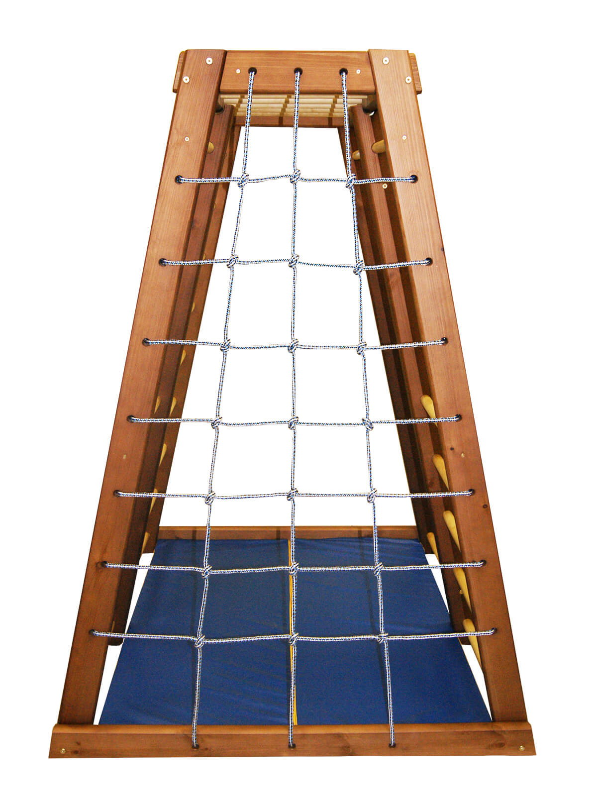 Высота и толщина перекладин, размер ячеек сетки, диаметр колец подобраны так, чтобы детям было удобно и безопасно ими пользоваться.