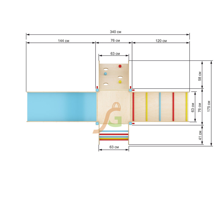 Длина площадки: 340 см