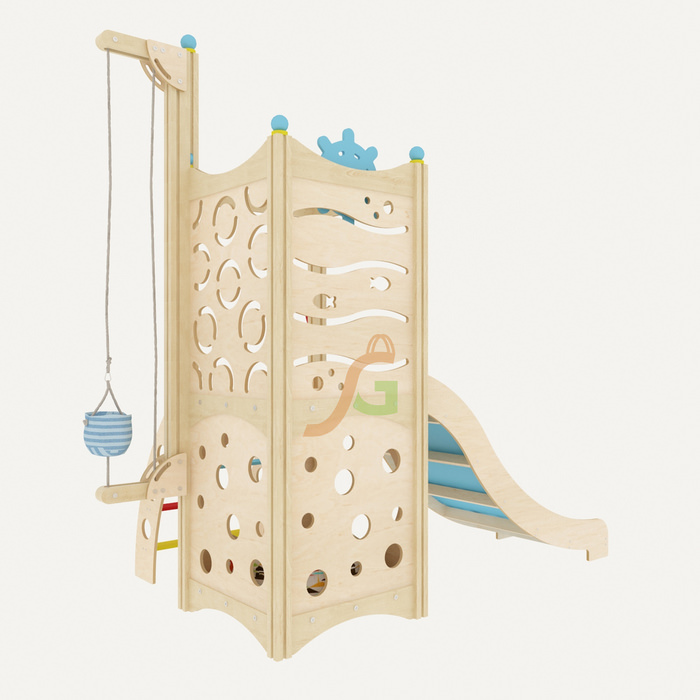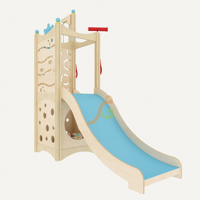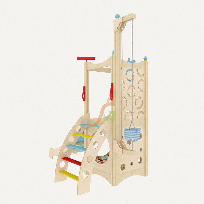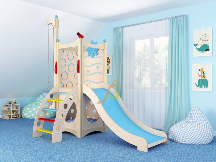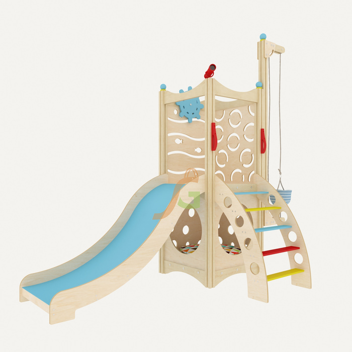 дополняется различным игровым оборудованием: бинокль, штурвал, поэтому малыши могут поиграть в моряков или пиратов;