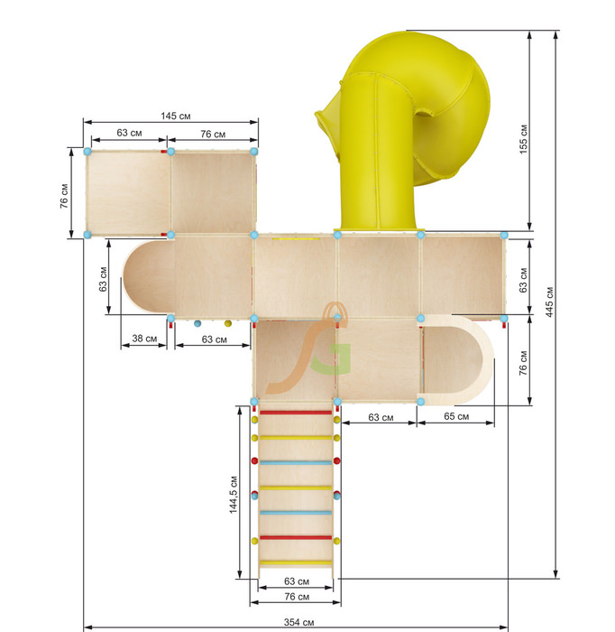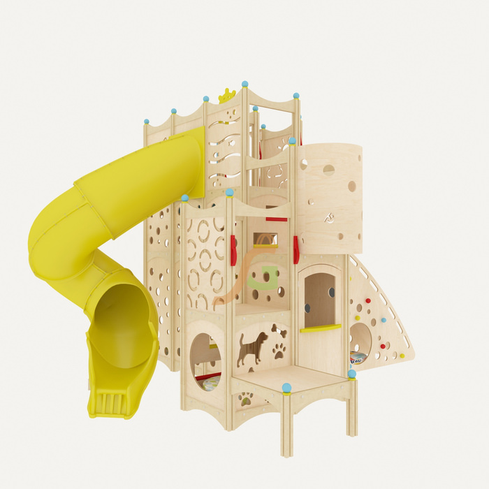 Внутри конструкции предусмотрен лабиринт, который дети с большим удовольствием захотят проходить по несколько раз в день. Это один из лучших способов, способствующего физическому развитию;