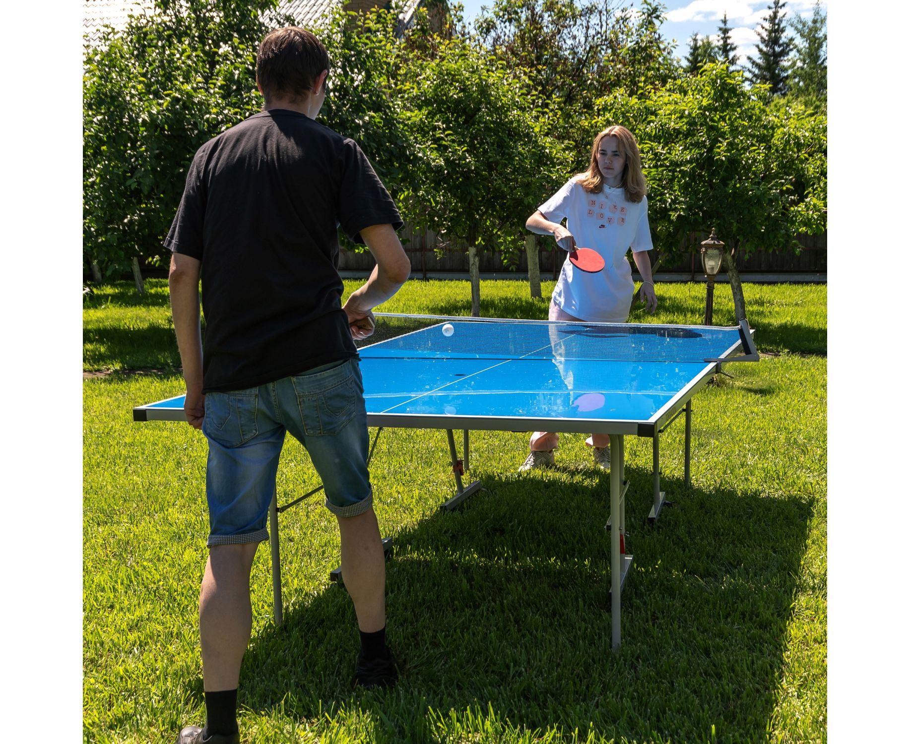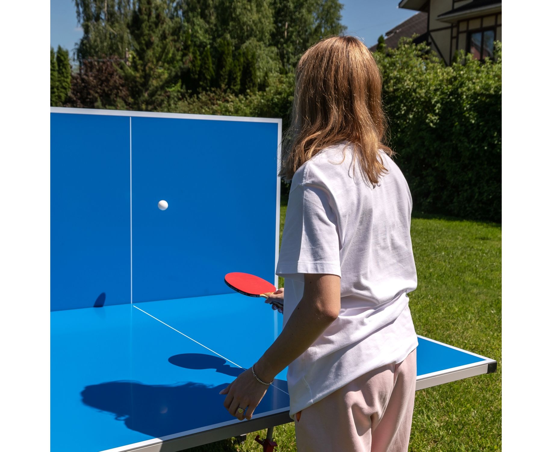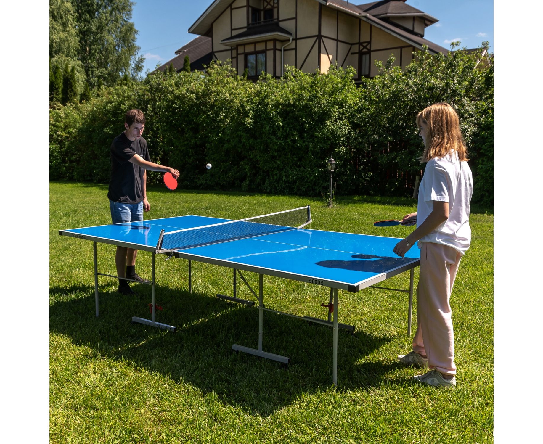 Каждая столешница на отдельной базе. Игровая плита с пластиковым наполнителем, окрашенным в 5 слоёв и защищена алюминиевым кантом. Сетка поставляется в комплекте со столом.