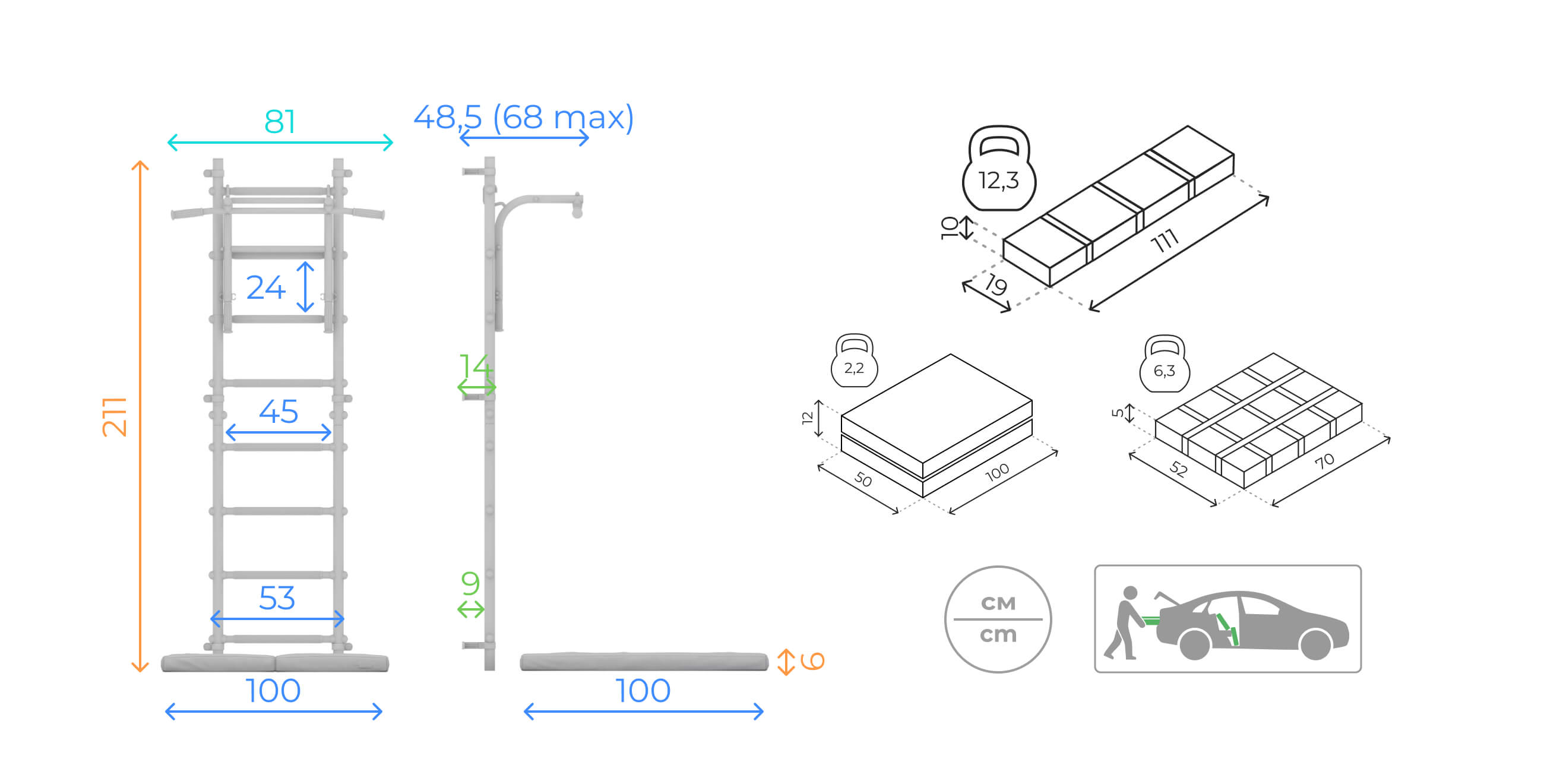 Шведская стенка с брусьями ROMANA S11, Pastel